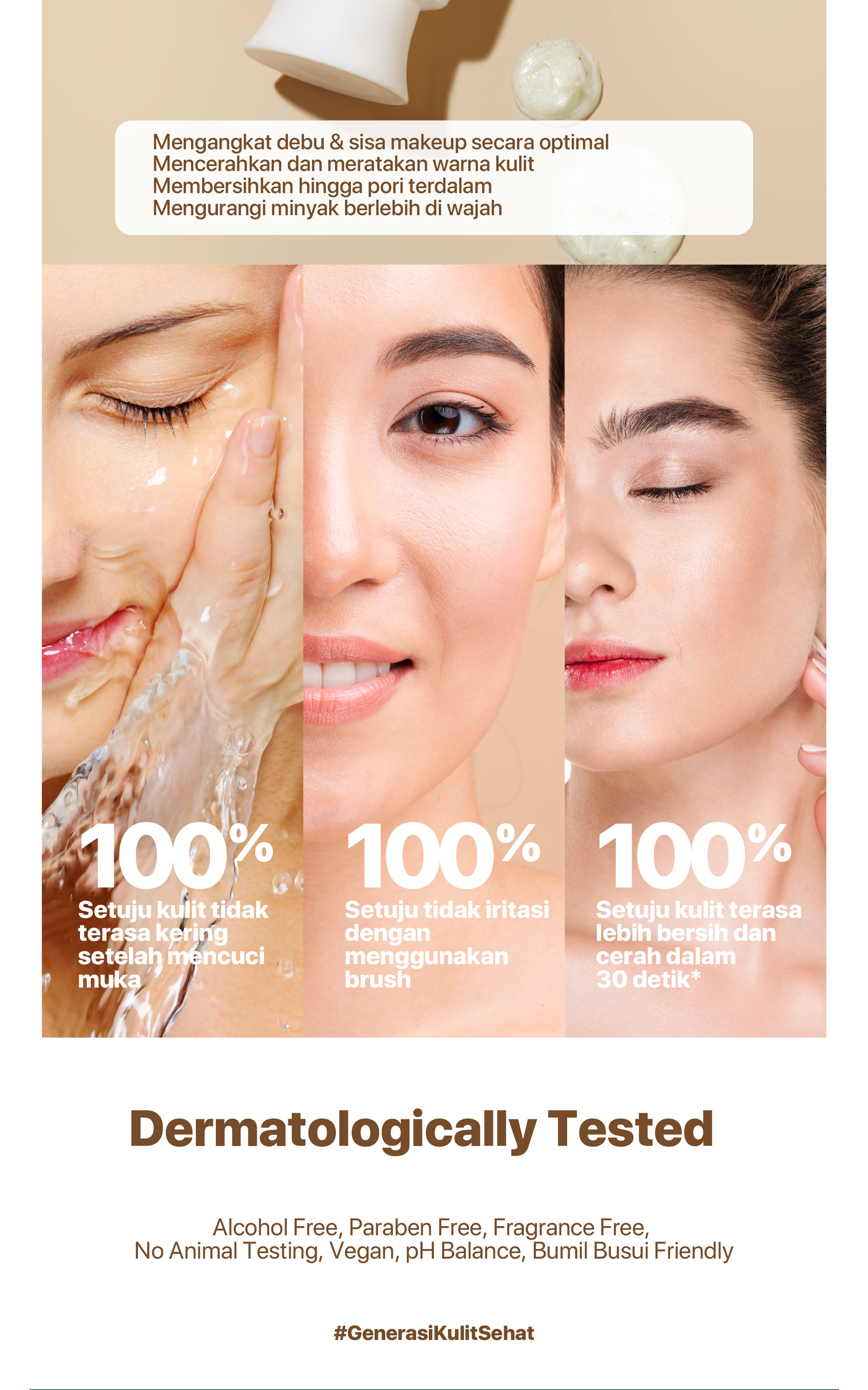 Tuangkan secukupnya pada telapak tangan dan pijat lembut pada kulit wajah yang basah. Bilas dengan air hingga