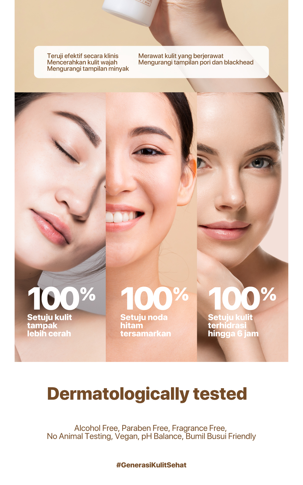 teruji efektif secara klinis dapat mencerahkan kulit wajah, mengurangi tampilan minyak, merawat kulit yang
